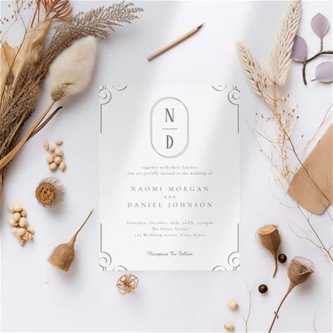 Simple Elegant Grey Scroll Frame Wedding Invitation