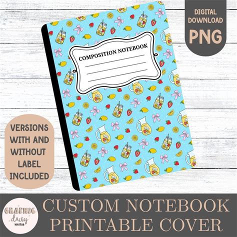 Printable Composition Notebook Cover, PNG, Back to School Personal Notebook, Custom Journal - Etsy