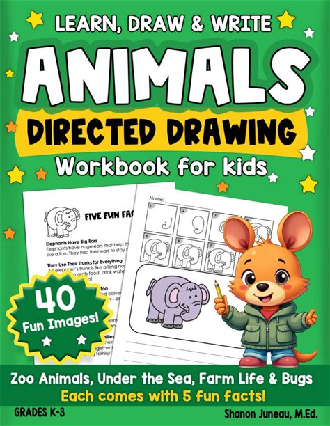 Draw And Write Workbook For Kids: Directed Drawing, 5 Fun Facts, Zoo Animals, Under The Sea, Farm And Bugs