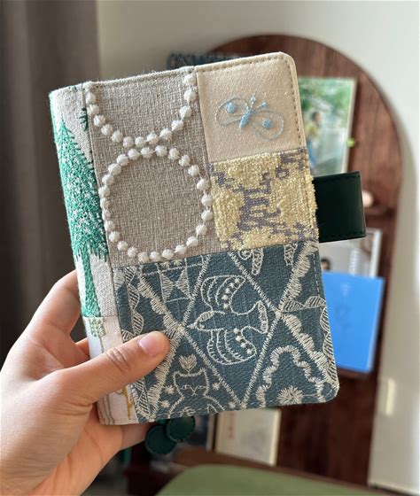 Retro Handmade Patchwork Pine Tree Butterfly Embroidery Stitching Notebook Journal Fabric Leather Notebook Cover A5 A6 B6 Weeks Wedding Gift