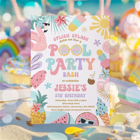 Editable Pool Party Invitation Tropical Splish Splash Girly Pool Party Invitation Summer Swimming Pool Splash Pad Party Instant Download FK