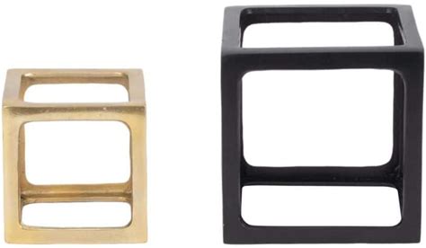 Black 7 in. X 7 in. Metal Open Square Cube Decorative Sculpture (Set Of 2)