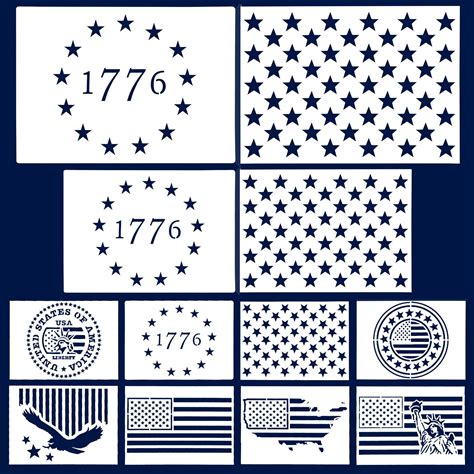 12 PCS Plastic American Flag Star Stencil,1766 Templates & Map& Star Stencils For Painting On Wood, Fabric, Paper, Walls Art-DIY Drawing Painting
