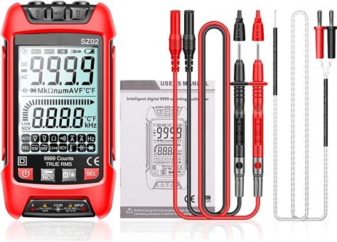 1Pc SZ02 Smart Digital Multimeter Auto Transistor Testers Electrical Temp Capacitance Resistance Meter True RMS(SZ02 Red)(SZ02 Red)