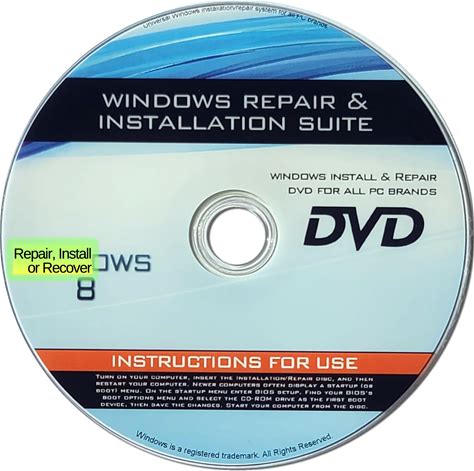 Recovery, Repair & Re-Install Disc Compatible With Win 8 32/64 Bit