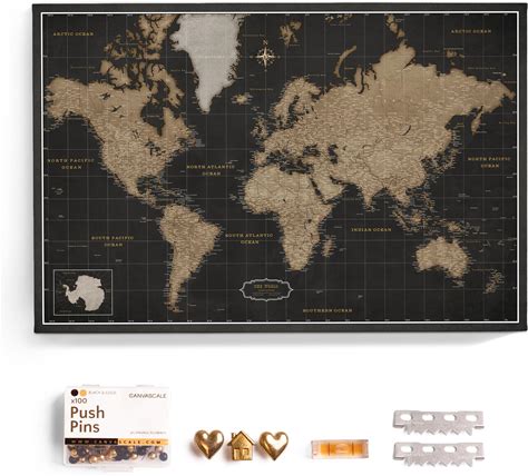 IPIC - Vintage World Map Canvas Wall Art, Travel Map Print For Home, Office, Or Study, Push Pin Board Decor For Travel Lovers, Ready To Hang