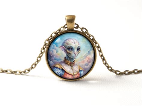 Alien Si-Fi Watercolor Style Necklace Gift For Men Artist Gift Si-Fi Alien Pendant Alien Necklace Space Art Personalized Jewelry Customized
