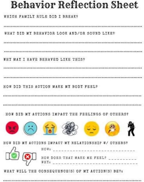 Behavior Reflection Sheet | Behavior Think Sheet- For Kids, Children, Teens