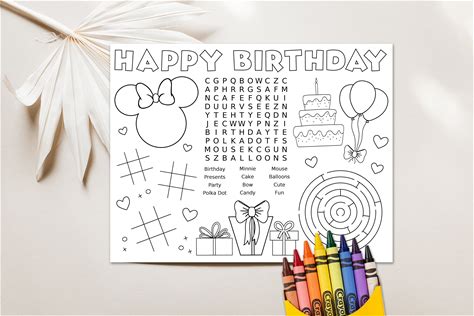Birthday Activity Placemat Printable Birthday Activity Sheet Birthday Party Activities Printable Birthday Keepsake Party Activities For Kids
