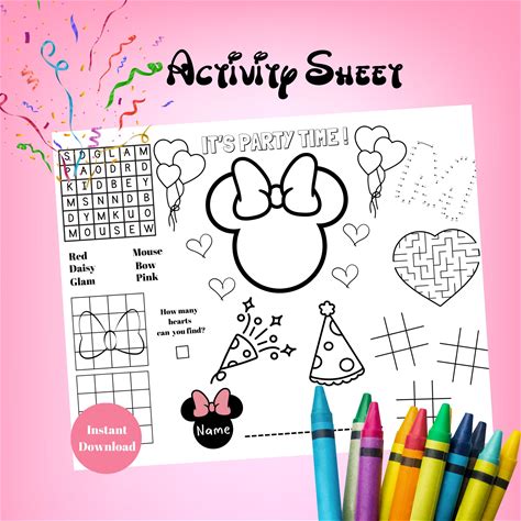 Mouse Birthday Activity Placemat, Party Activity Sheet, Girls Birthday, Party Printable, Birthday Party Favor, Coloring Page,