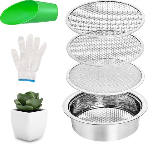 3PCS Soil Sifter Set, Stainless Steel Rock Garden Sieve Soil Sifter, 9.6in Compost Sifter Screen Pan Contain 3 Interchangeable Mesh Sizes (0.05",0.15",0.25") With Bonsai Soil Scoops Gardening Tool