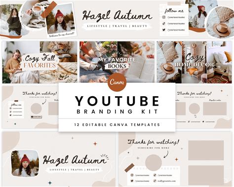 Youtube Branding Kit | Editable Channel Banner, Intro, Outro, Video Thumbnail | Cozy Neutral Boho Autumn Fall Brand Canva Templates - Hazel