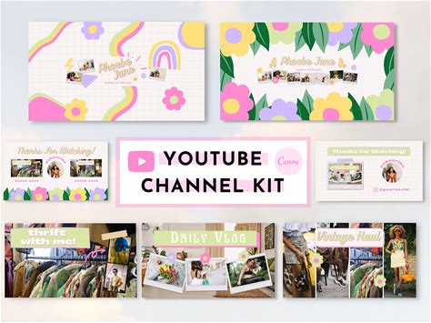 Phoebe Channel Kit | Youtube Branding Kit | 2 Personalised Banner, 2 Intros, 2 Outros, 3 Thumbnails L Editable Canva Templates