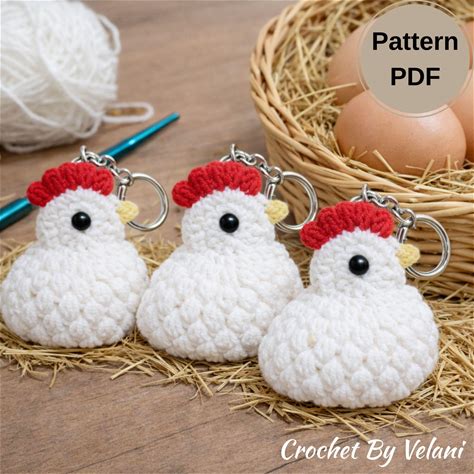 Chicken Keychain Crochet PATTERN ONLY! PDF Download Amigurumi Beginner Easy How To Mini Miniature Keyring Key Chain Chick Farm Animal Small