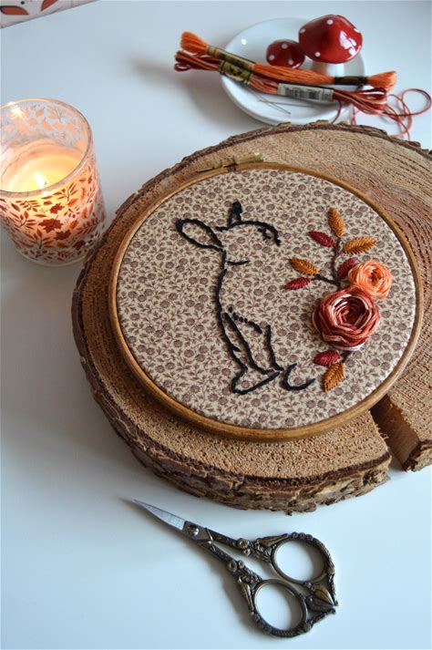 Autumn / Fall Rabbit Embroidery Hoop, Bunny Embroidery, Woodland Embroidery, Floral Embroidery, Finished Embroidery Hoop (6" Hoop)