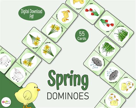 Spring Dominoes - A Fun Printable Matching Game For Kids, Perfect For Spring Activities, Homeschool, Classrooms & Family Game Nights!