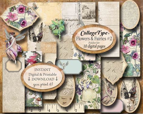 French Antique File Folder Printable - Documents N121 Printable - Raindrop Lila Junk Journal Digital