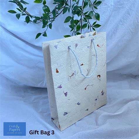 Handmade Lokta Paper Gift Bag, Pressed Flower Design, Eco Friendly