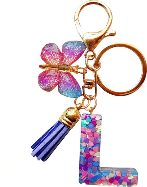 SANLONGXL Cute Initial Letter Keychains For Women Girls Tassel Butterfly Pink Purple Green Keychain For Backpack School Bag