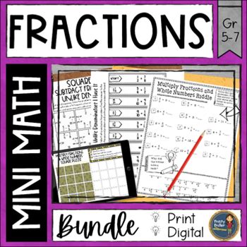 Fractions Math Activities Bundle Puzzles & Riddles - No Prep - Print & Digital