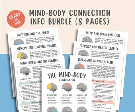 Mind Body Connection Info Sheets (8 Pages), Emotional Wellness Guide, Psychology Printable, CBT, Mental Health Healing Therapy Worksheets