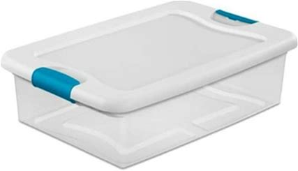 Den Designs Storage Box 32 Qt Latching - White Lid, Blue Latches, Rectangular