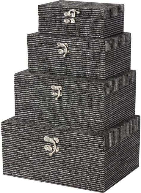 Rectangle Fabric Handmade Storage Box With Silver Latches (Set Of 4)