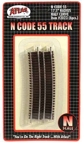 Atlas 2023 N Code 55 Nickel Silver 17.5" Radius Half Curved Track (Pack Of 6) Pack Of 10