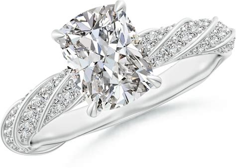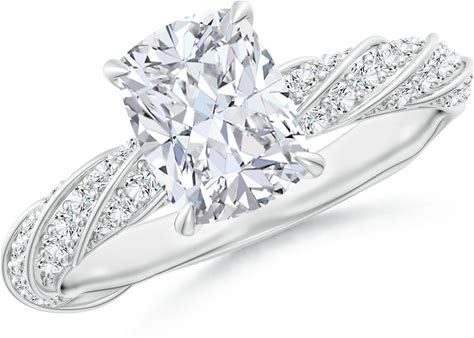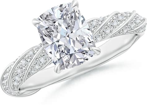 Angara 2.42 CTW Cushion Rectangular Lab-Grown Diamond Twisted Rope Shank Engagement Ring In Platinum