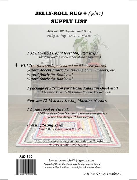 Jelly Roll Rug Oval Quilt Pattern By RJ Designs/Roma Lambson Fabric Strips Rug Pattern 30" X 44" Area Rug Pattern