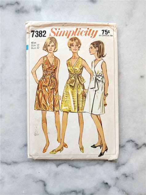 60S Simplicity 7382. 32 Bust. Sleeveless V Neck Front Wrap Dress. Mod Retro A Line Skirt 1960S Vintage Sewing Pattern Simple To Sew