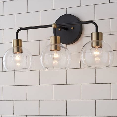 Young House Love Clear Glass Bubble Vanity Light - 2 Light, 12"H X 17"W X 8.75"D, Bronze / Clear Glass / Brass, Metal, Shades Of Light