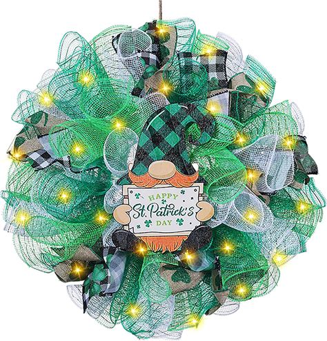 Luxury Handmade St. Patricks Day Deco Mesh Wreath -Lucky And I Gnome It Front Door Decor, 24" Or 28"