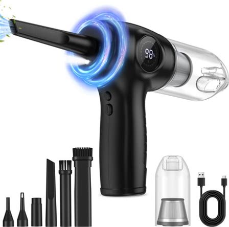 Handheld Air Duster & Mini Vacuum Cleaner Combo With 6 Attachments, Multi-Functional Rechargeable Cleaning Kit For Computers, Cars, And Electronics