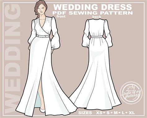 Wedding Dress Sewing Pattern: Misses' Wrap Dress (PDF Digital Download, 5 Sizes XS-XL, A4 Print-At-Home/A0 Plotter Format)