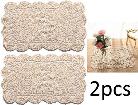 2 Pcs Handmade Rectangle Doilies, 2-Piece Handmade Crochet Cotton Doilies Lace Table Crochet
