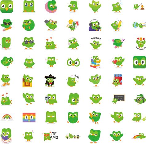 10/55PCS Duolingo Cartoon Stickers Language Learning Decals Graffiti DIY Decoration Laptop Phone