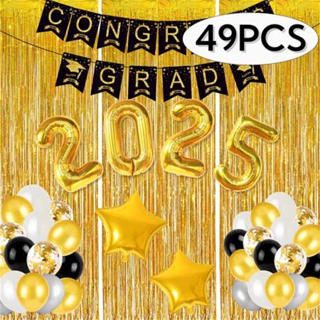 16 Pcs Graduation Decorations Class Of 2025, Black & Gold Double- Sided Graduation Centerpieces, Graduations Party Centerpieces, Graduation Party Decorations For Table Toppers,
