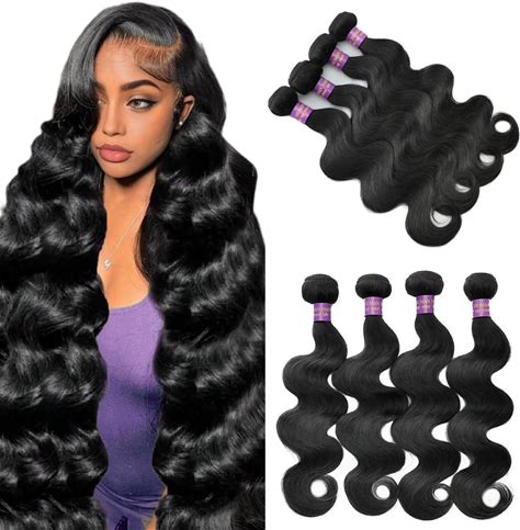 12A Body Wave Bundles Human Hair 22 24 26 28 Inch Human Hair Bundles 100% Unprocessed Brazilian Virgin Hair 4 Bundles Deals Hair Extensions Real Human