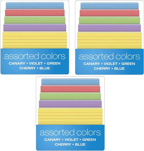 Oxford Ruled Color Index Cards, 4" X 6", Assorted Colors, 100 Per Pack (34610), 3 PACK