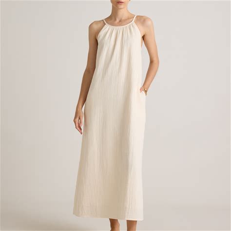 Women's Gauze Sleeveless Maxi Dress In Vintage Cream, Size Medium, Organic Cotton By Quince