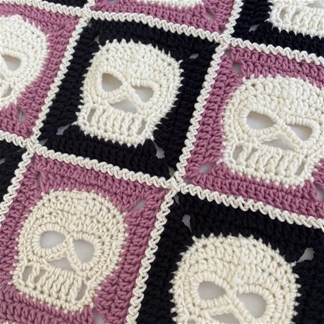 Skull Head Granny Square Crochet Pattern PDF With Video Tutorial, Rainbowyarnpatterns, Skull Head Crochet Blanket