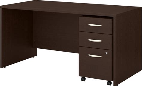 Office Desk With 3 Drawer Mobile Office File Cabinet 59"W X 29"D X 30"H In Mocha Cherry