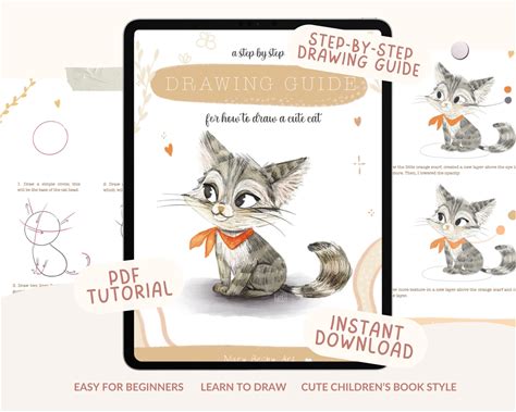 How To Draw And Colour A Cute Cat, Children Book Style, A Step By Step Drawing Guide, Procreate, With Video Tutorial, Pdf
