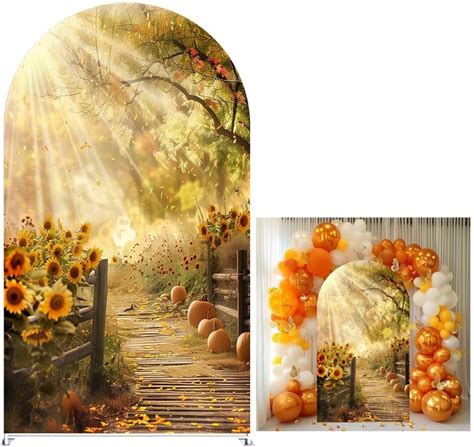 KONPON Fall Maple Leaves Arch Background Covers For Thanksgiving Party Decoration Sunflower Pumpkin Stretchy Arched Stand Cover Props(Only Cover)