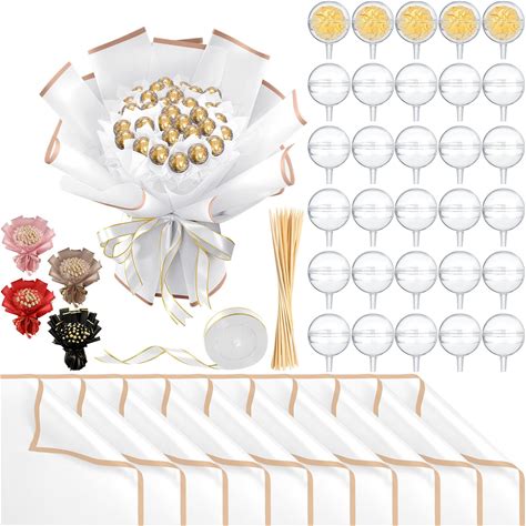 Funnymoom 71 Pcs DIY Chocolate Flower Bouquet Kit Graduation 2025 Candy Rose Clear Acrylic Lollipop Ball Holder Mother's Day Flower Wrapping Paper