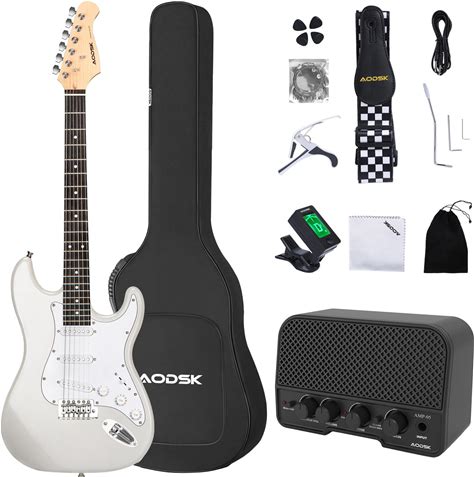 AODSK Electric Guitar With Amp Beginner Kit 39 Inch Solid Body Full Size,All Accessories,Digital Tuner,Six Strings,Four Picks,Tremolo Bar,Strap,Gig