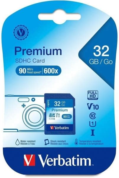 Verbatim 32GB Premium SDHC Memory Card, UHS-I V10 U1 Class 10, Up To 90MB/S Read Speed