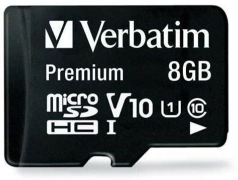 Verbatim 8GB Premium Microsdhc Memory Card With Adapter, UHS-I Class 10 - Class 10 - 80Mbps Read - 80Mbps Write1 Pack