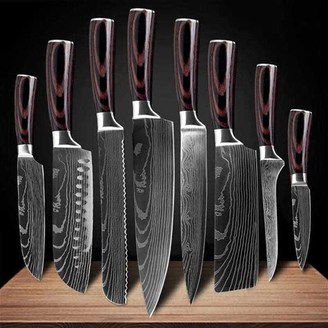 8-Piece Premium Japanese Kitchen Knife Set With Laser Damascus Pattern